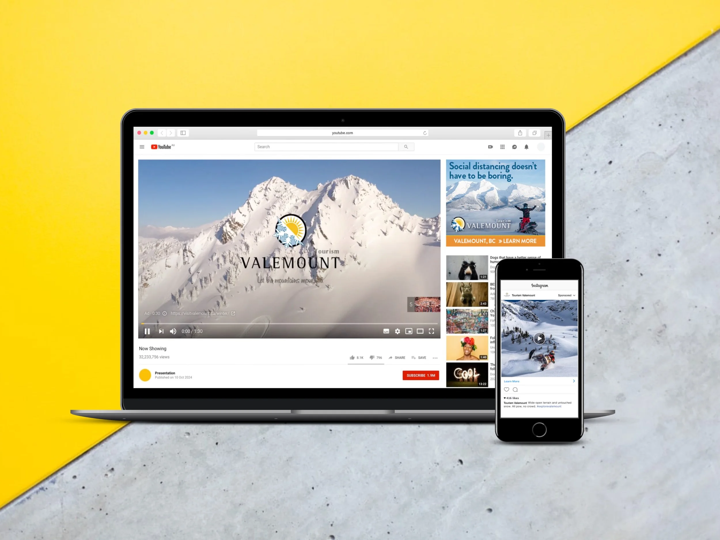 Inspiring tourists to visit Valemount, B.C., the Come home to Vale campaign highlights the region’s pristine environment and ample opportunities for winter sports. Paired with existing photography and videos, the messaging was carefully crafted to appeal to snowmobile enthusiasts familiar with Valemount, intending to invoke nostalgia for them to return.